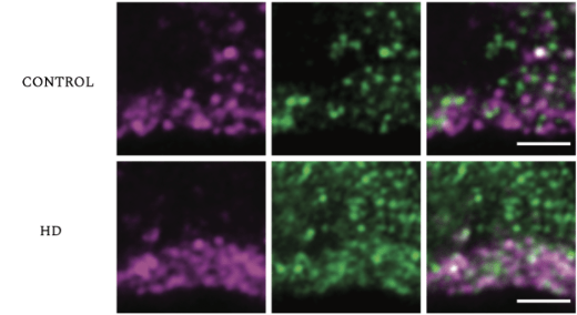 Cases such as this one inspired Barnat et al. to question if early events at the cellular level set the stage for later complications. The study used human fetuses at gestation week 13 (GW13), which were acquired from parents who carry a genetic variant of Huntington’s disease. The researchers also used mouse embryos for comparison. Huntingtin (HTT) protein is a protein that is important for development, whereby it acts in vesicular transport (the movement of molecular cargoes inside the cell). It is found throughout the body, especially in the brain and testes. In patients, HTT is mutated and is referred to as mutant huntingtin (mHTT). Barnat et al. state that mHTT hinders the function of many cellular processes such as endocytosis and Golgi-membrane trafficking. To show this, the researchers stained and compared the HTT protein with different components of developing cells that are important for endosomal trafficking, such as the trans-Golgi network, a protein known as early endosome antigen 1 (EEA1), and transferrin receptors, which in mutant samples all overlapped to a significantly greater extent than with the controls Golgi-reassembly-stacking protein (GRASP65) and endoplasmic reticulum (calnexin). Thus, the mutant HTT protein may specifically interact with these factors to disrupt brain development.